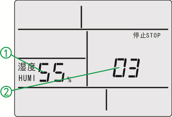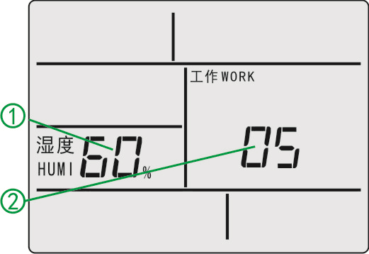 ⑶濕度繼電器輸出指示:當(dāng)濕度繼電器輸出,“加濕”顯示“加濕ADHU”。